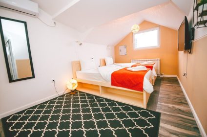 Na petom spratu iste zgrade, nudimo 7 svetlih, moderno dizajniranih apartmana. S različitim strukturama i opcijama, naši apartmani pružaju maksimalnu udobnost. Pored povoljnih cena, obezbeđujemo besplatan parking, wi-fi internet i opciju obedovanja u restoranu.